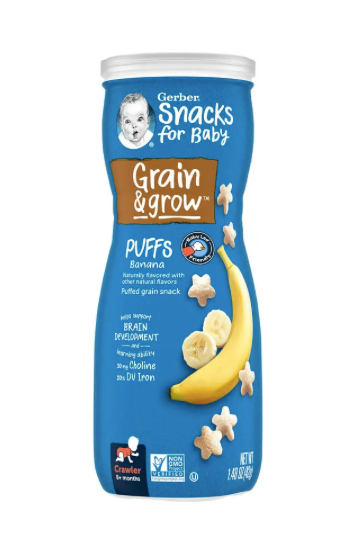 Gerber® Grain & Grow™ Puffs have 20% RI of Iron and 30 mg choline per serving for your little one to support brain development and learning ability.
